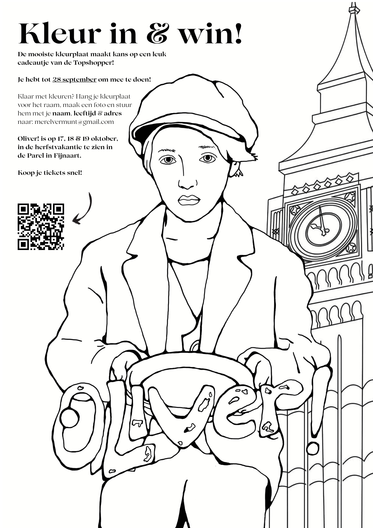 Hou jij van kleuren én van musicals? Doe dan mee met onze speciale Oliver! kleurplatenactie!